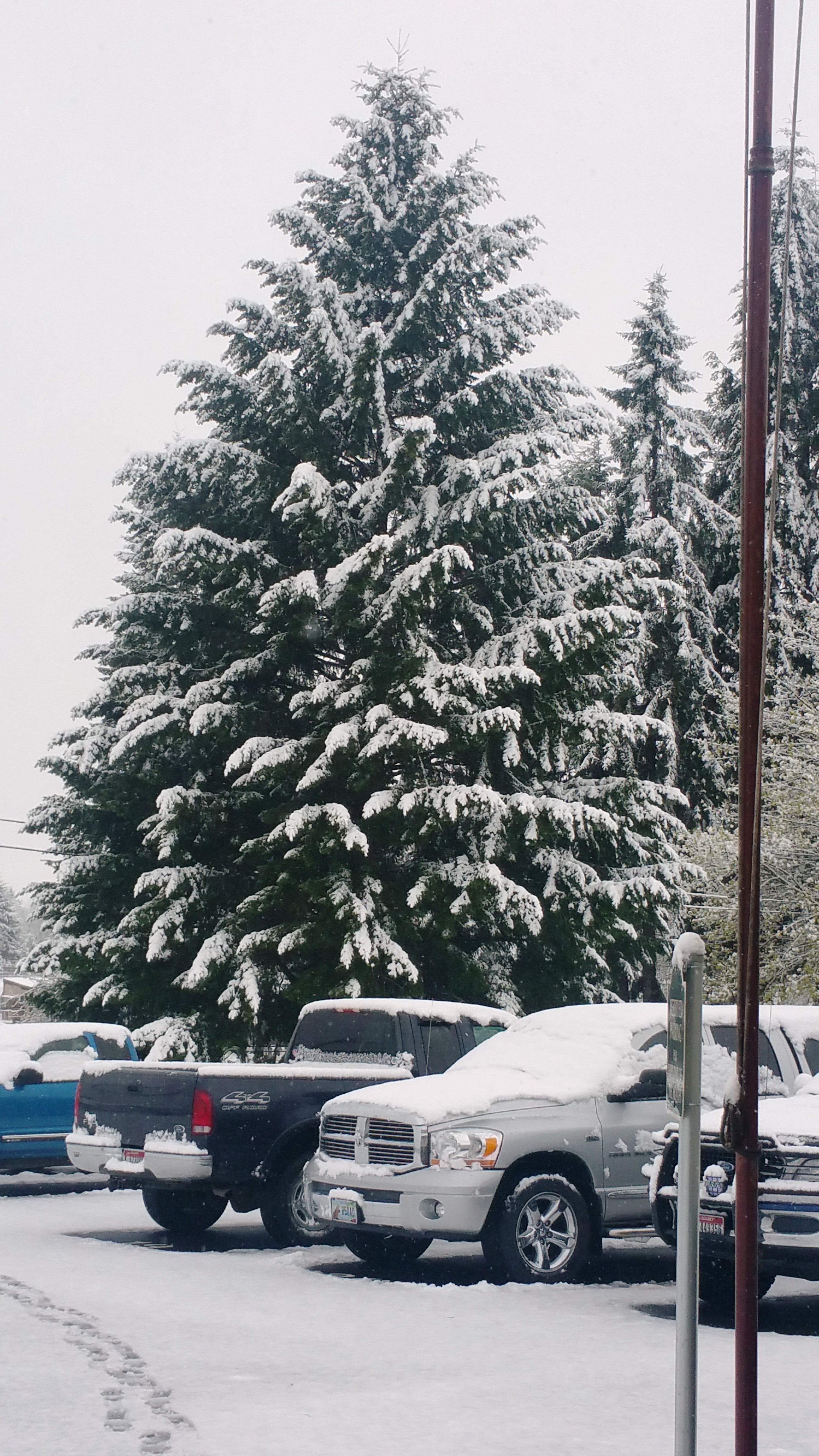 Yup, this is Spring. We thought we were having an early Spring, what with all the unusually warm weather lately. My daffodils and tulips are now covered in snow and are none too happy!